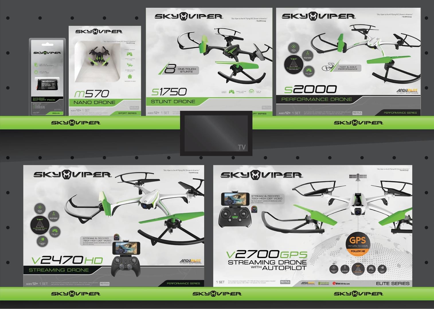 Having a closed box was most cost effective focused on making a beautiful representation on the front with major features in the same place that makes comparing models easier for the customer. I also helped with showroom displays, marketing assets and concepts as well as displays, POGs, Pallet configurations, video shelf talkers and instructions.