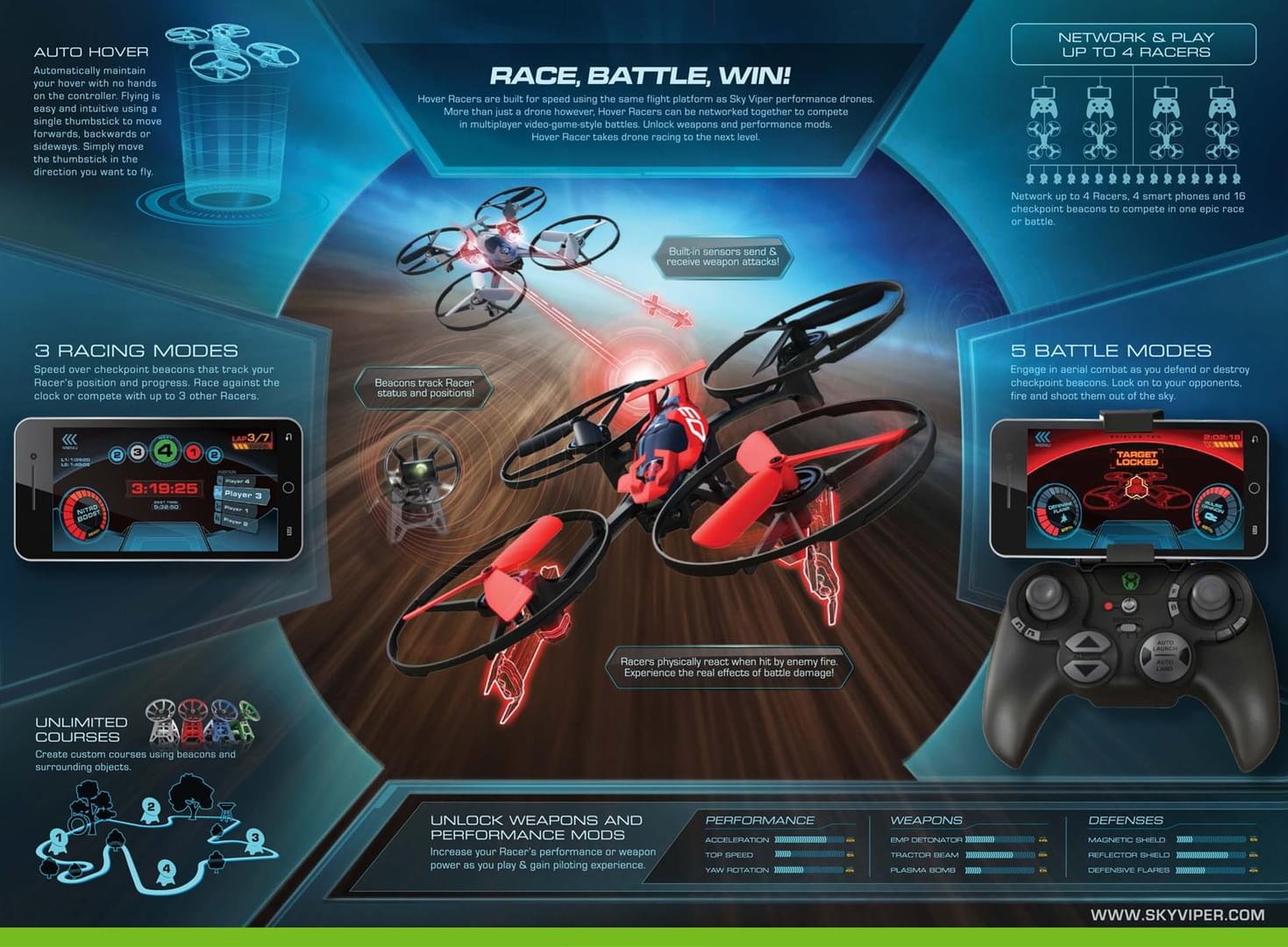Helping to design the user interface for Sky Viper Hover Racer App was an exciting challenge, leveraging my passion for gaming to inspire a dynamic and engaging user experience. Everything was designed to quickly find the pertinent information since drivers were just glancing down at the phone, mounted to the remote, while watching their drone race.